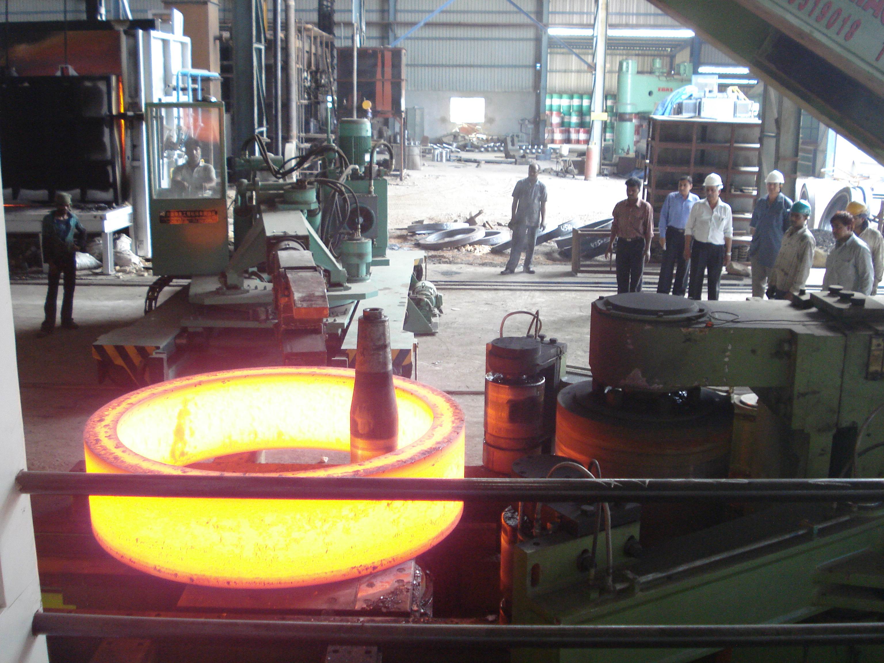 什么是閉式輾環(huán)機(jī)?閉式碾環(huán)機(jī)是將加熱并沖有小孔的坯料套在芯輥上,靠碾壓輥的內(nèi)緣帶動坯料旋轉(zhuǎn),實現(xiàn)坯料厚度的減薄與直徑的擴(kuò)大。這種工藝方式結(jié)構(gòu)等的限制,已較少采用。產(chǎn)品廣泛應(yīng)用于機(jī)械、汽車、火車、船舶、石油化工、航空、航天、原子能、風(fēng)力發(fā)電等眾多工業(yè)領(lǐng)域。 工作查看詳情 -